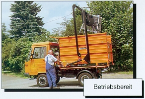 Fassungsvermögen: ca. 4 bis 9 cbm abhängig vom Trägerfahrzeug und der Größe vom Sammelcontainer